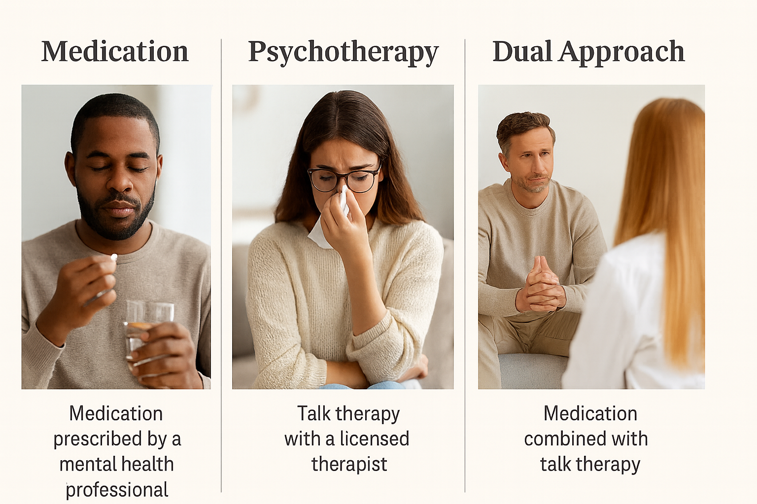 No. Medication is optional and considered collaboratively. When used, it complements therapy and skills work.